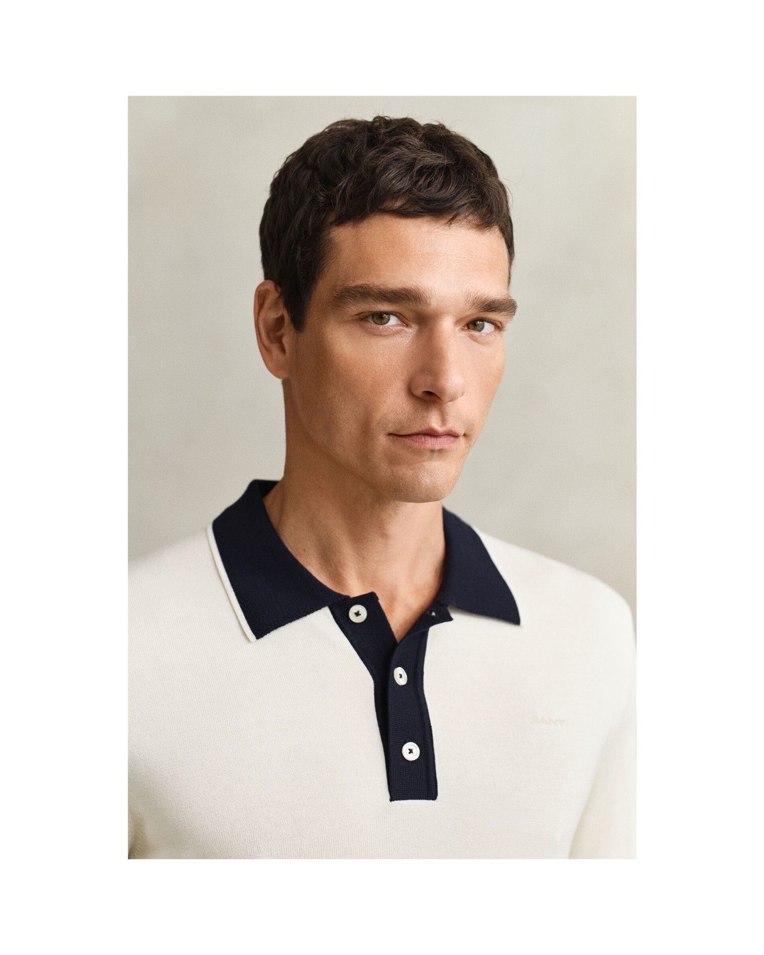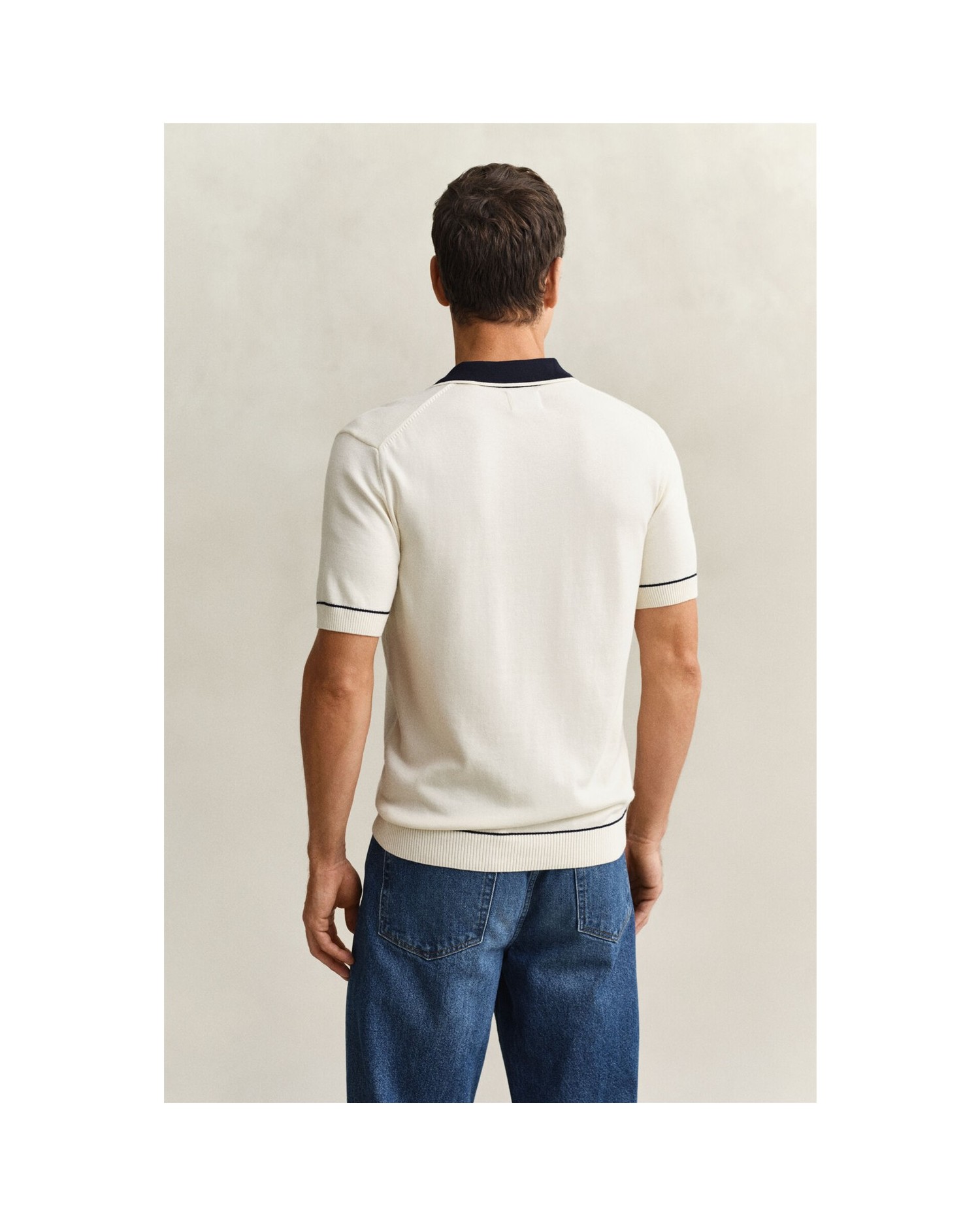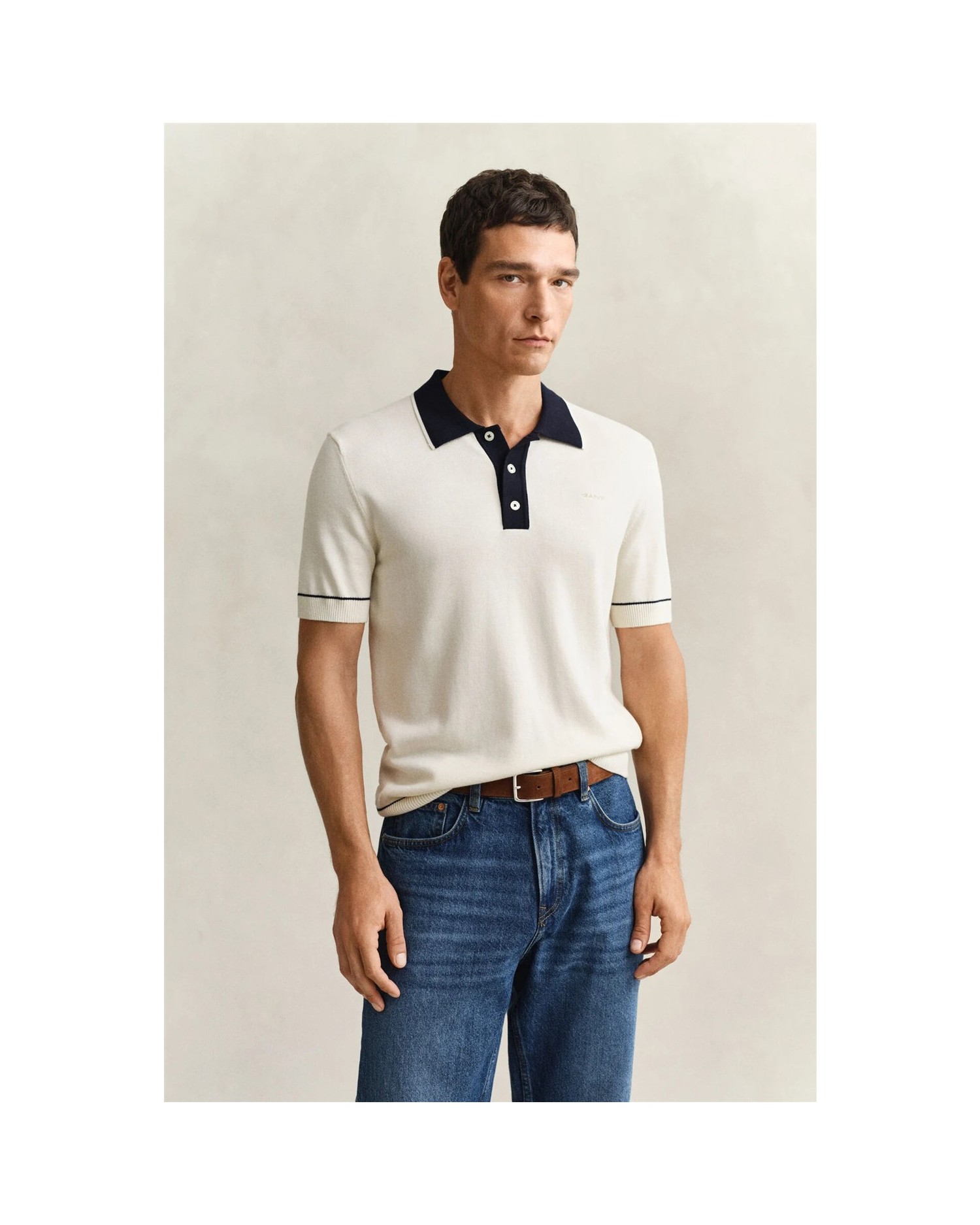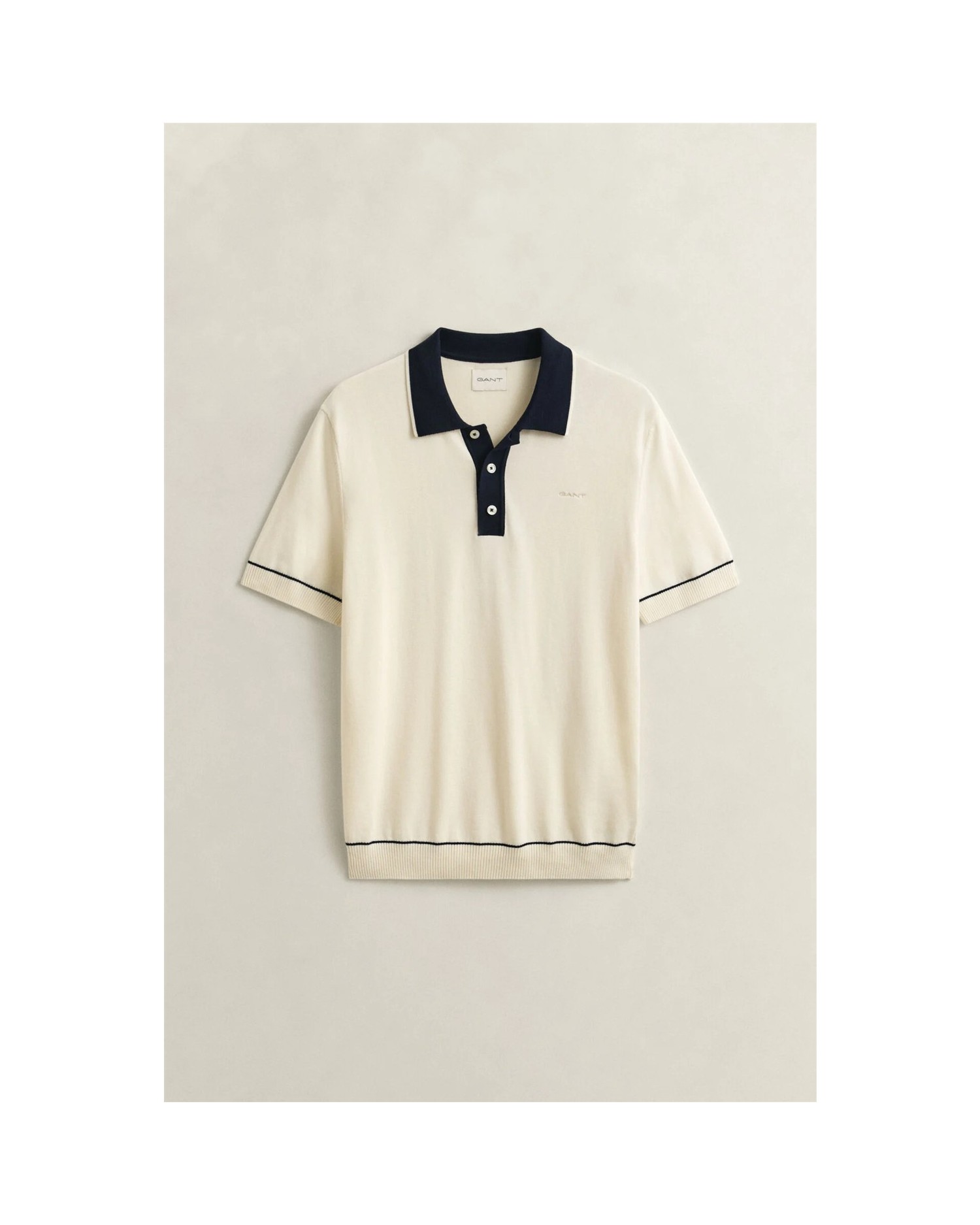 Este jersey de manga corta está confeccionado en punto de mezcla de algodón y modal, que le confiere un acabado suave. Presenta corte normal, cuello de polo y tapeta de color en contraste con detalle de rayas. Las rayas adornan también el bajo y los puños, además de los detalles acanalados. Para completar su diseño, incorpora botones de nácar sintético en la tapeta y un logotipo Gant bordado en el pecho.