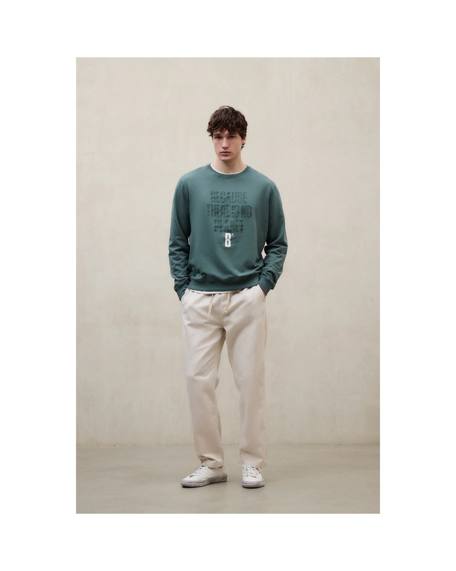 La Sudadera Bardera está fabricada con un tejido principal de 50% Algodón reciclado. Fit regular. Estampado en el frente y canalé en puños y dobladillo. Teñida y lavada en prenda.